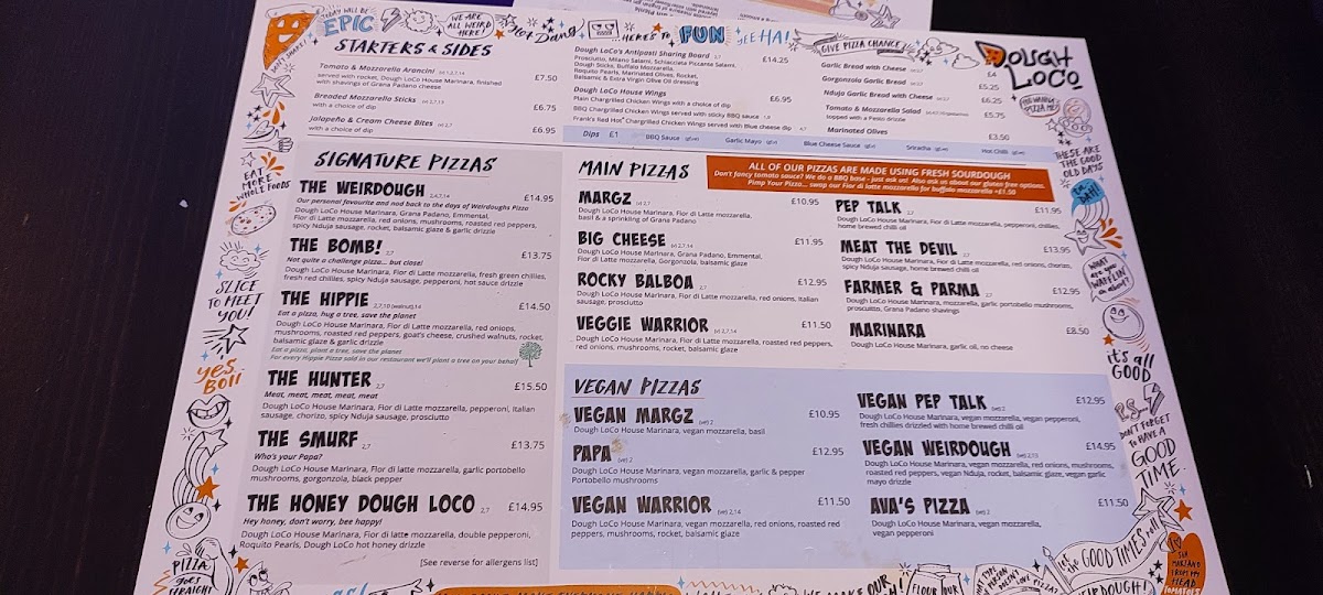 Welcome to Dough LoCo, a vibrant pizzeria located on Drury Lane in Lincoln, where creativity meets quality. The star of the menu is undoubtedly the signature The Weirdough, featuring a delightful blend of House Marinara, various cheeses, and a medley of toppings including spicy Nduja sausage and balsamic glaze, all for just £14.95. If you're feeling adventurous, try The BOMB!, a fiery delight that promises a flavor explosion.